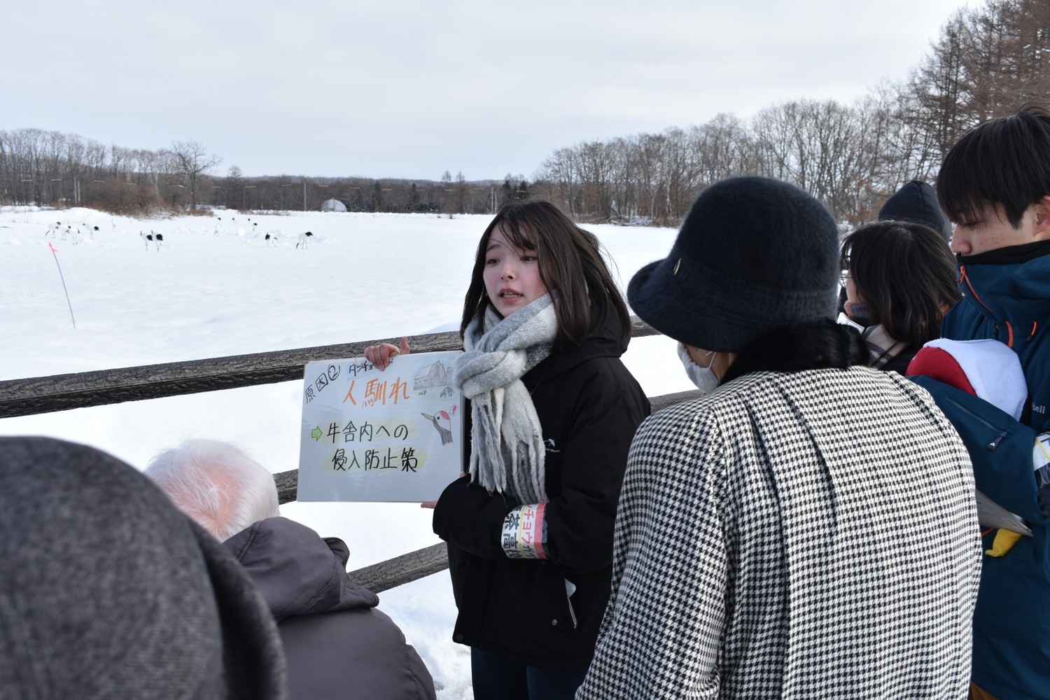 タンチョウの生態解説 標茶高生、観光客に自然ガイド実習(2025-02-05)