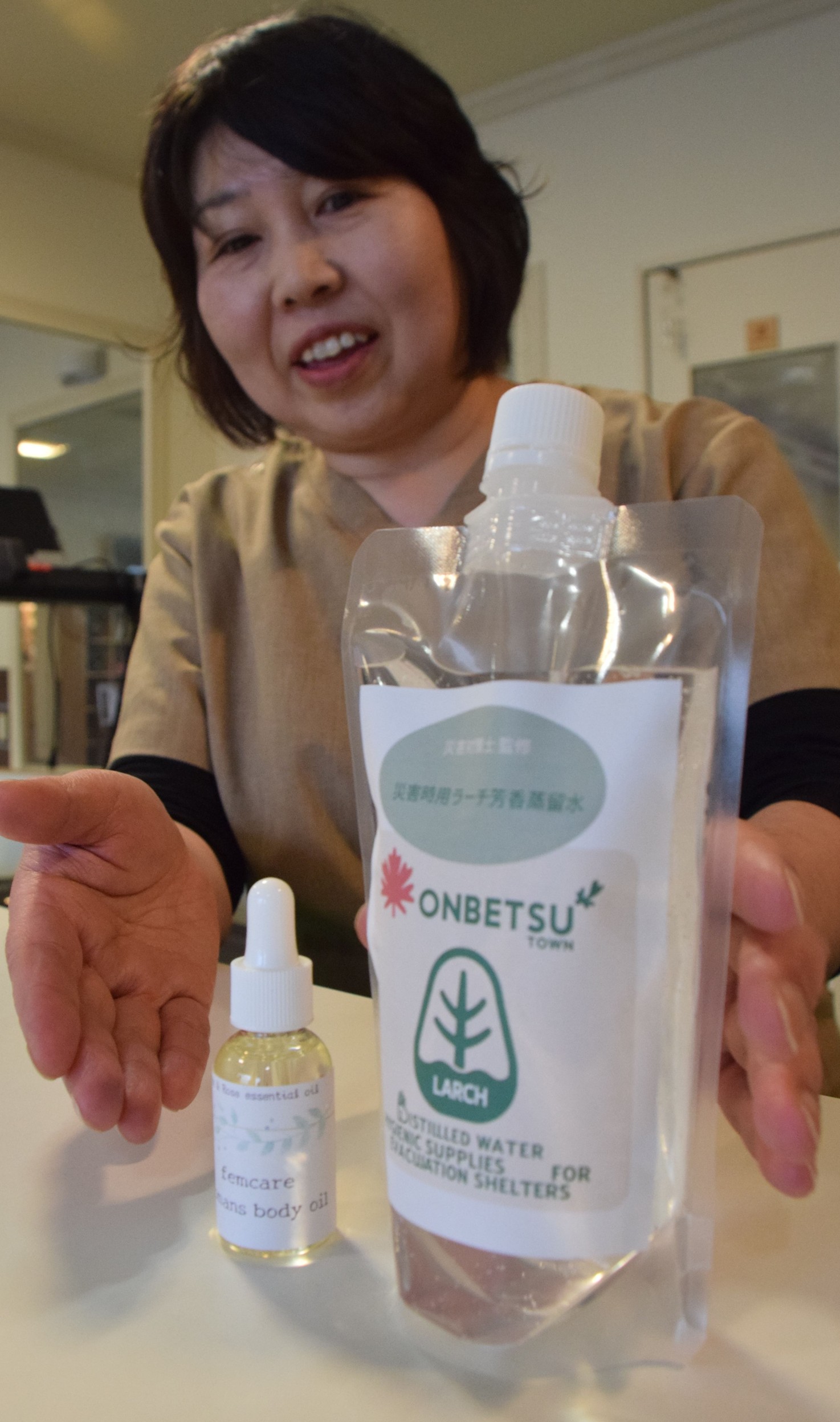 音別産カラマツで商品開発 なのはな整骨院野村さん【釧路市】(2025-06-02)