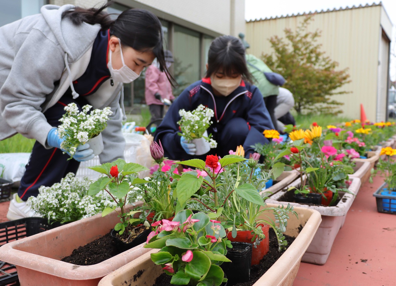 図書館前を花で彩る カレンダーリサイクル市実行委、根室高生らと植栽【根室】(2025-06-03)