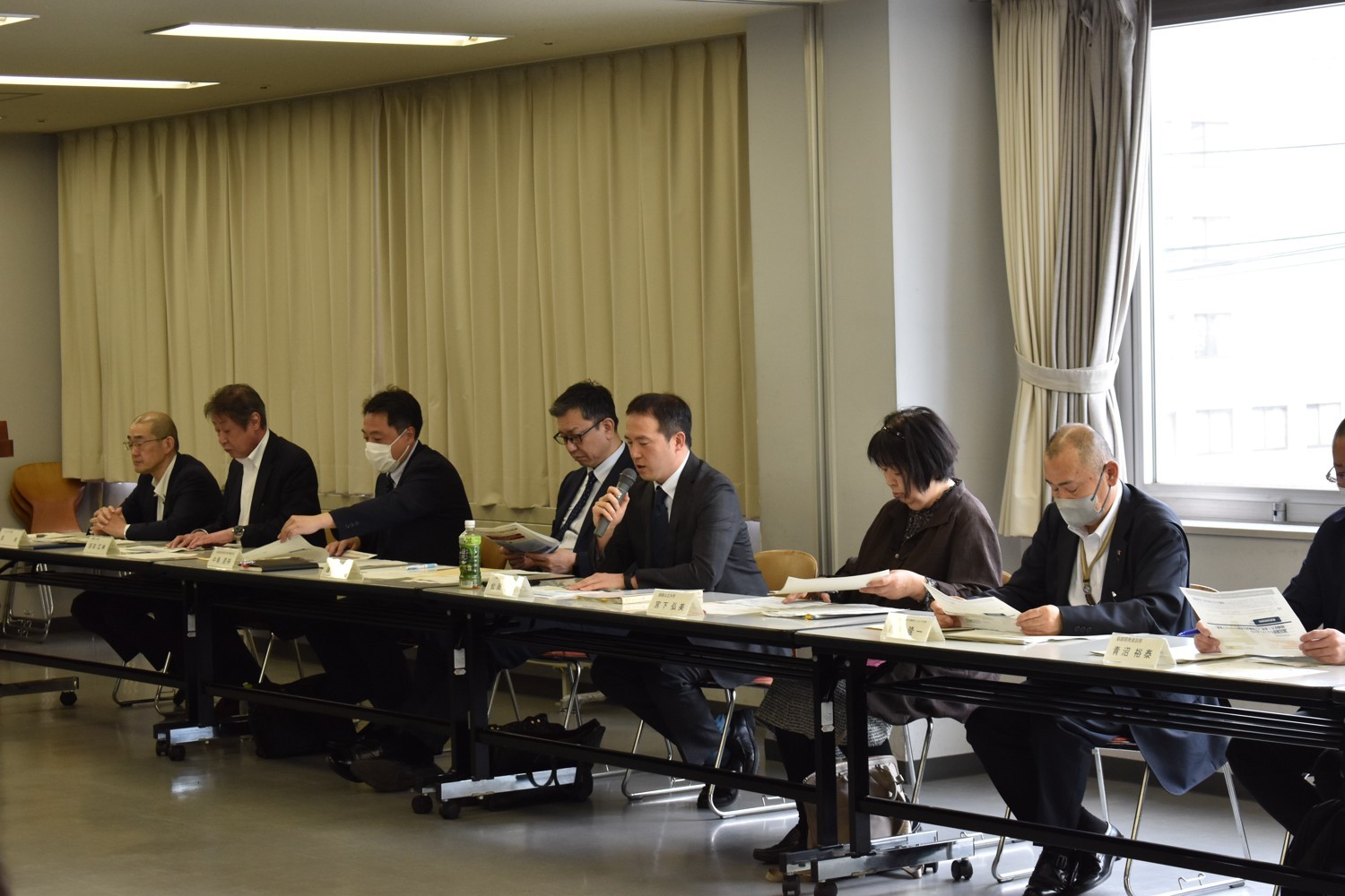 [写真/ライドシェア事業について説明する松岡社長(右から3人目)]