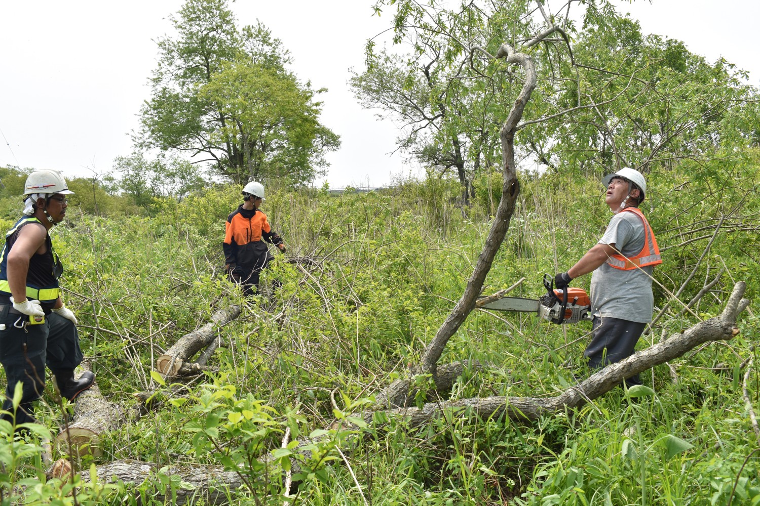 [写真/チェーンソーを使った雑木の整理作業]