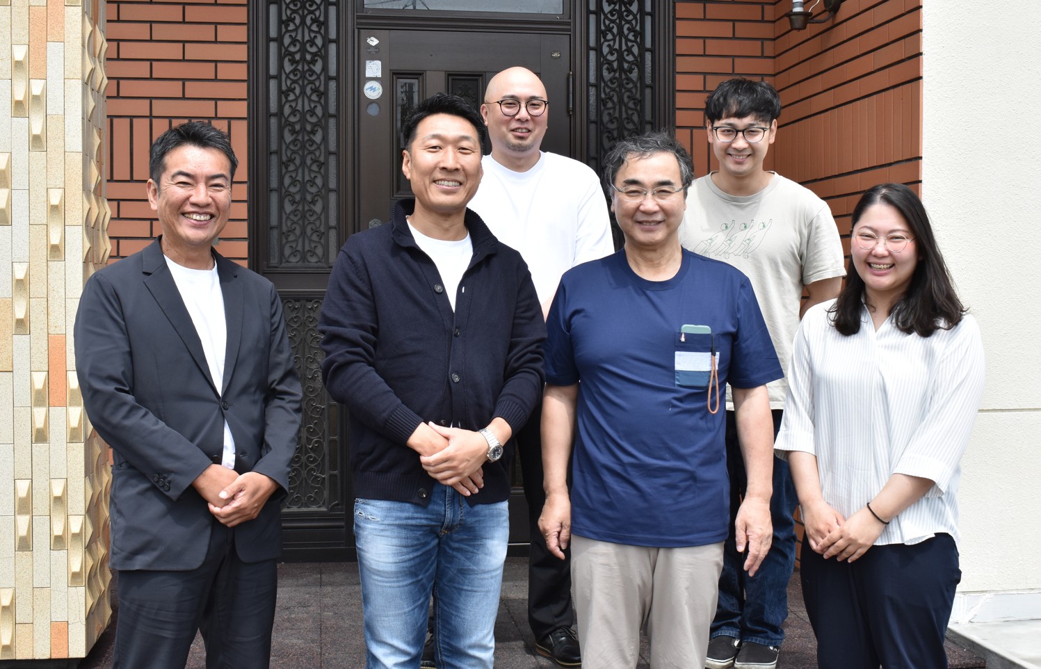 [写真/セブンセンスグループの井本代表社員(前列左端)、徐グループ代表(同左から2人目)と安田釧路オフィス代表(同右端)]