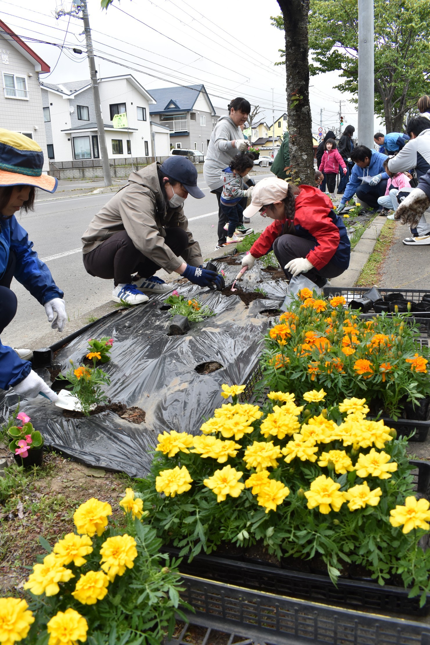 歩道に彩り1700株植栽 ふれあい花壇作業【釧路町】(2025-06-06)