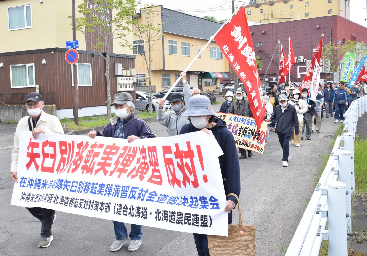 [写真/実弾演習に反対するデモ行進]