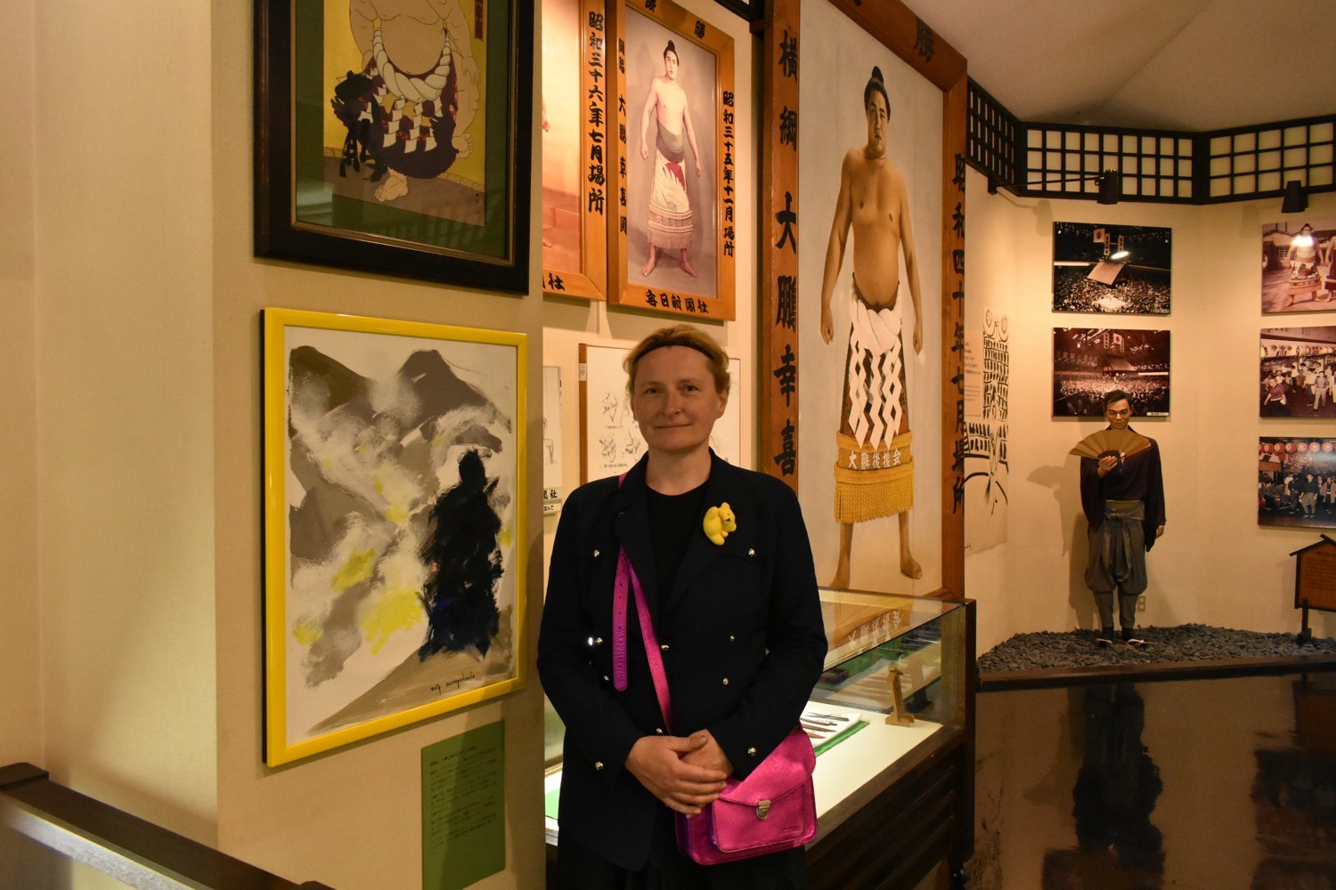 [写真/大鵬と硫黄山を描いた作品(左下)とスコロパデンコさん]