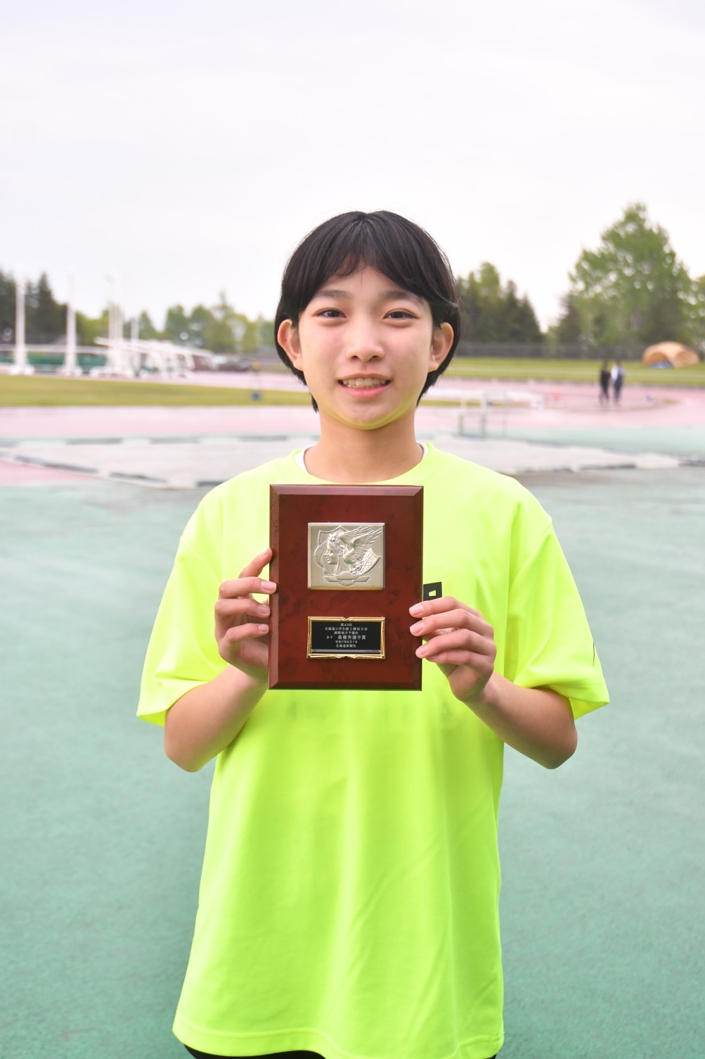 [写真/小学6年女子の走り幅跳びとコンバインドBの二種目で大会記録を塗り替えた弟子屈の櫻岡。2年連続で最優秀選手賞に輝いた]