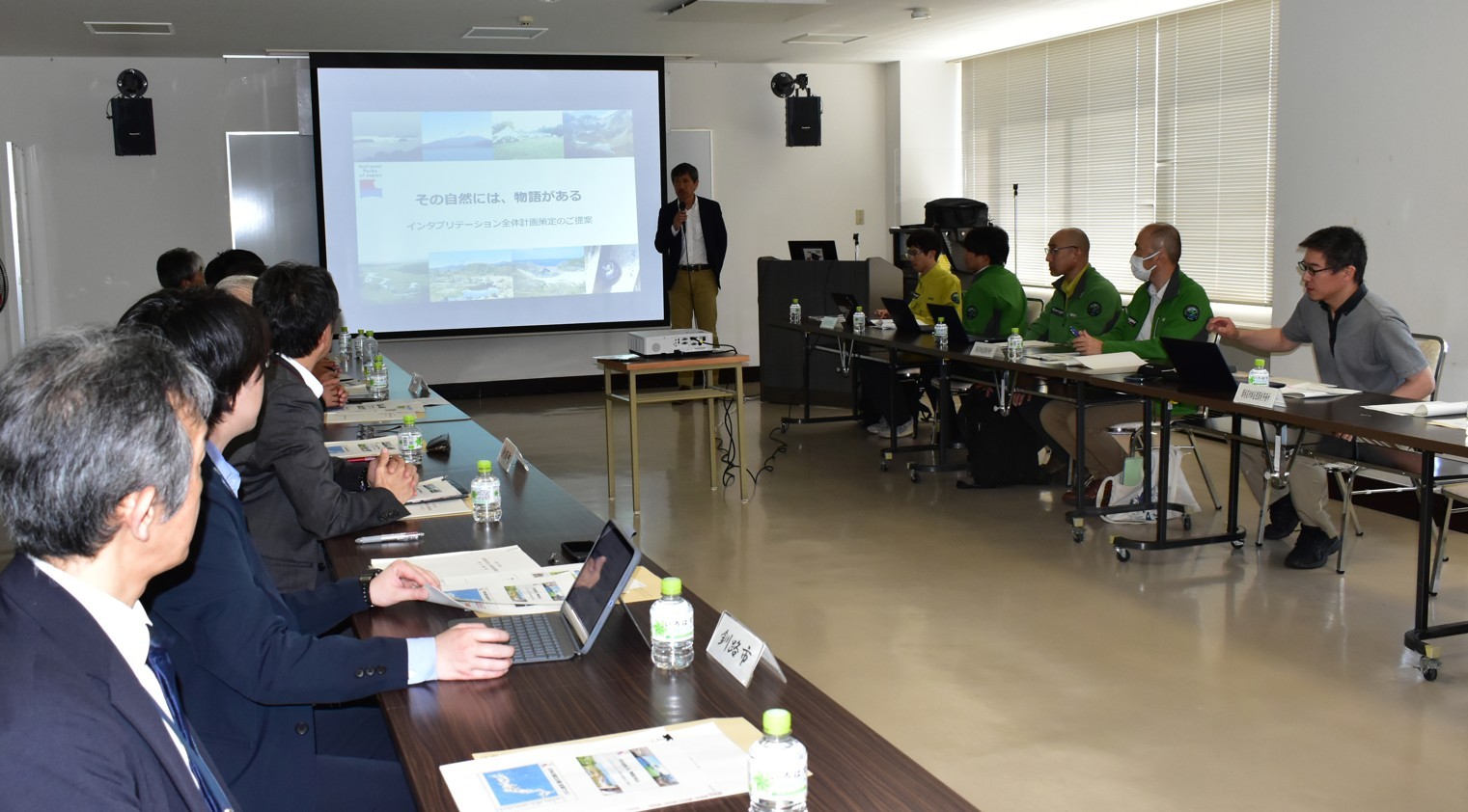 [写真/IP全体計画についての提案に聴き入る関係者]