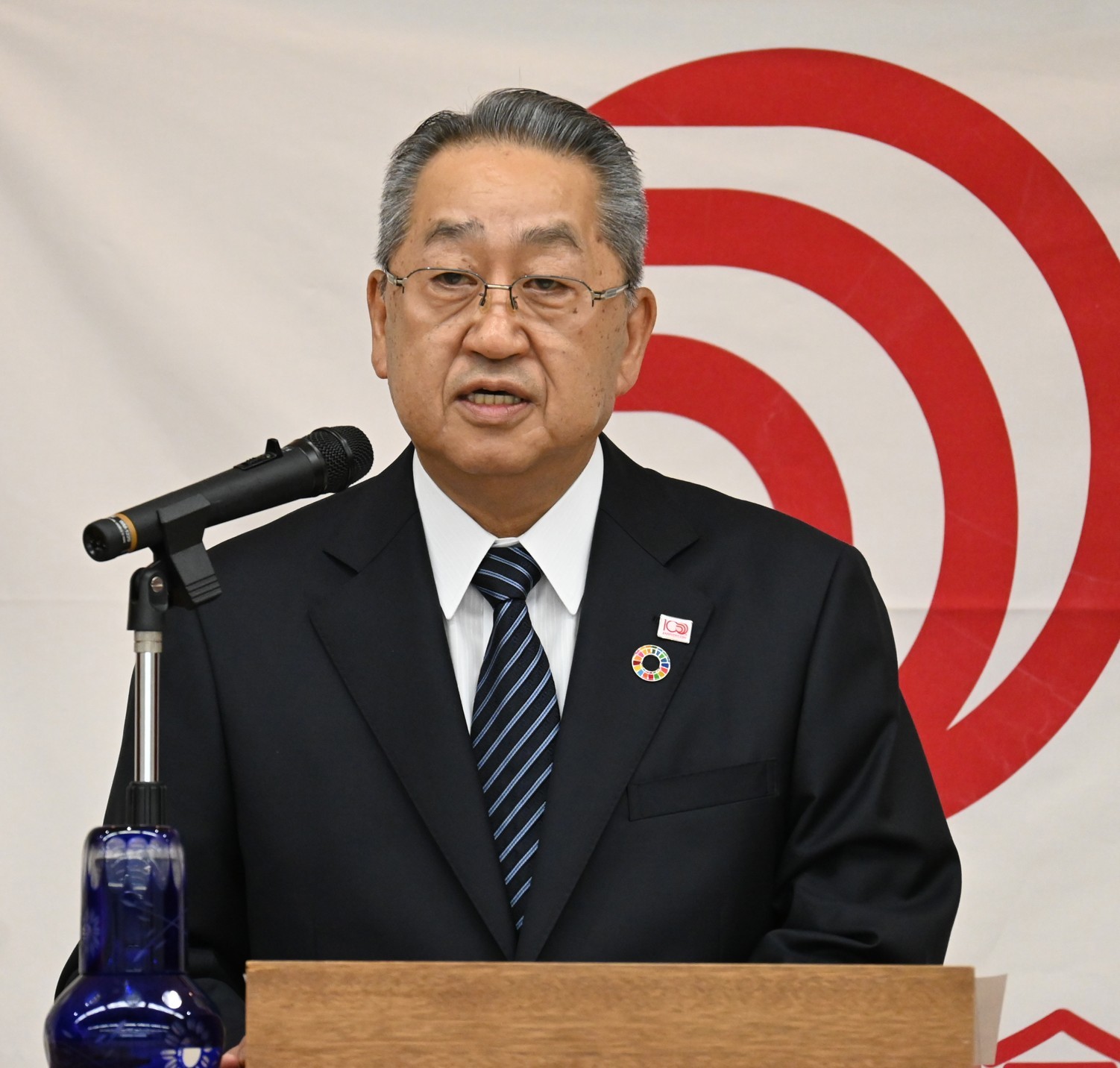 [写真/あいさつする森村理事長]