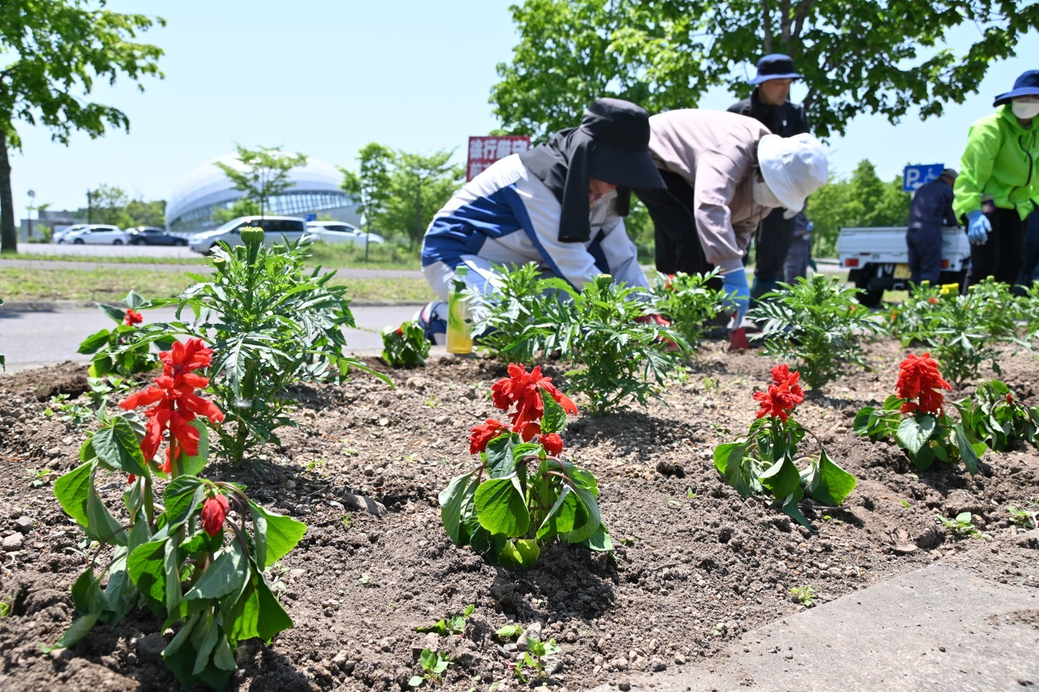 中央分離帯花壇にサルビア1200株植栽 ゆめの森公園【中標津】(2025-06-17)