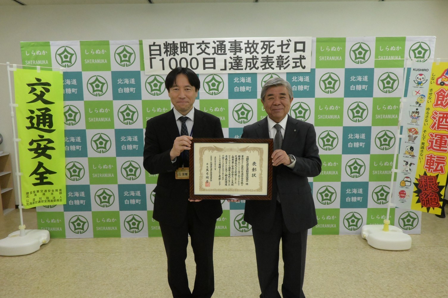 事故死ゼロ1000日達成 道交通安全推進委、白糠町に表彰状【白糠】(2025-06-17)