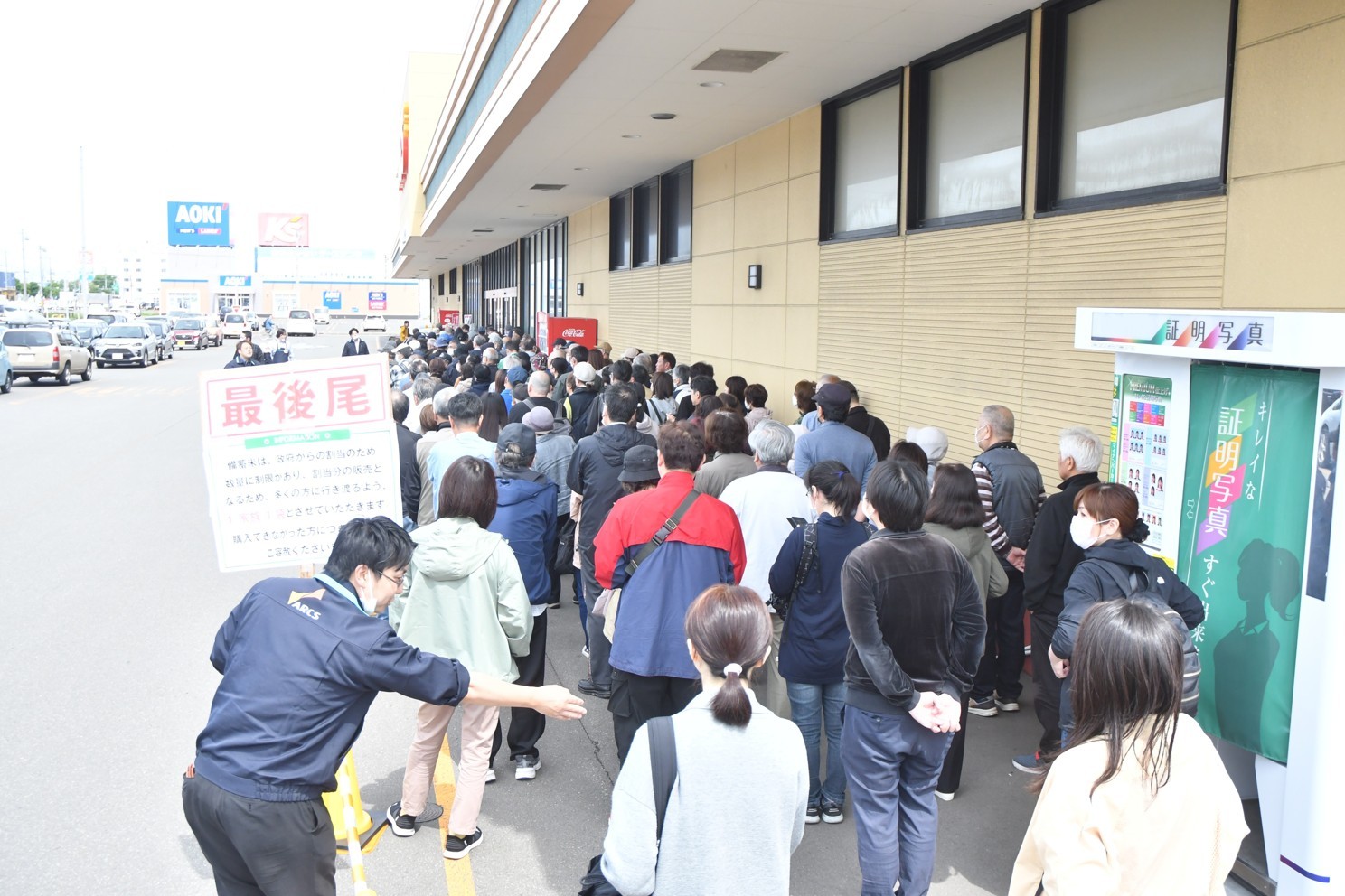 [写真/備蓄米を求め、開店前には長蛇の列ができた(16日午前9時35分ごろ、鈴木大聖撮影)]