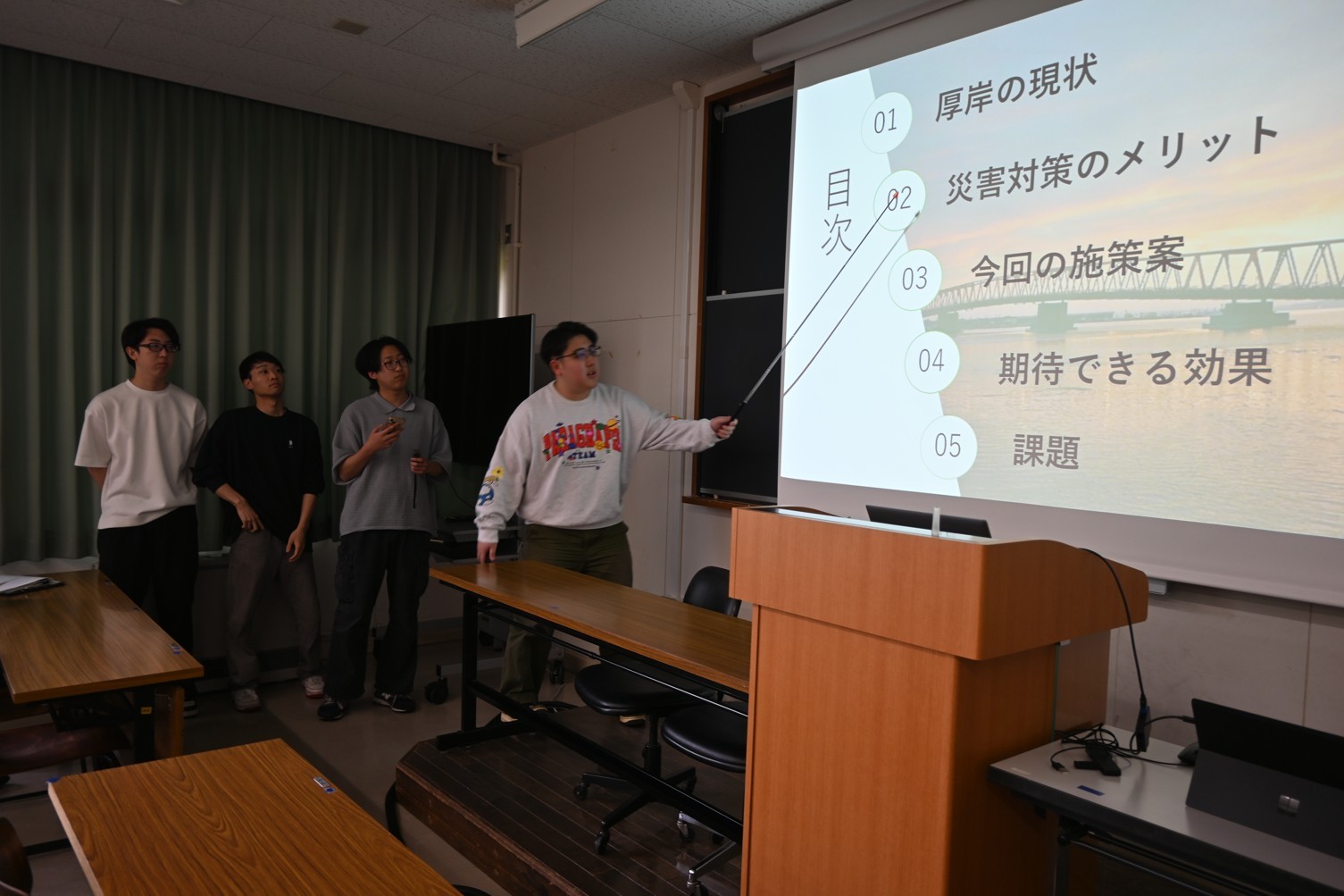 [写真/厚岸町の地域課題解決策を発表する学生ら]