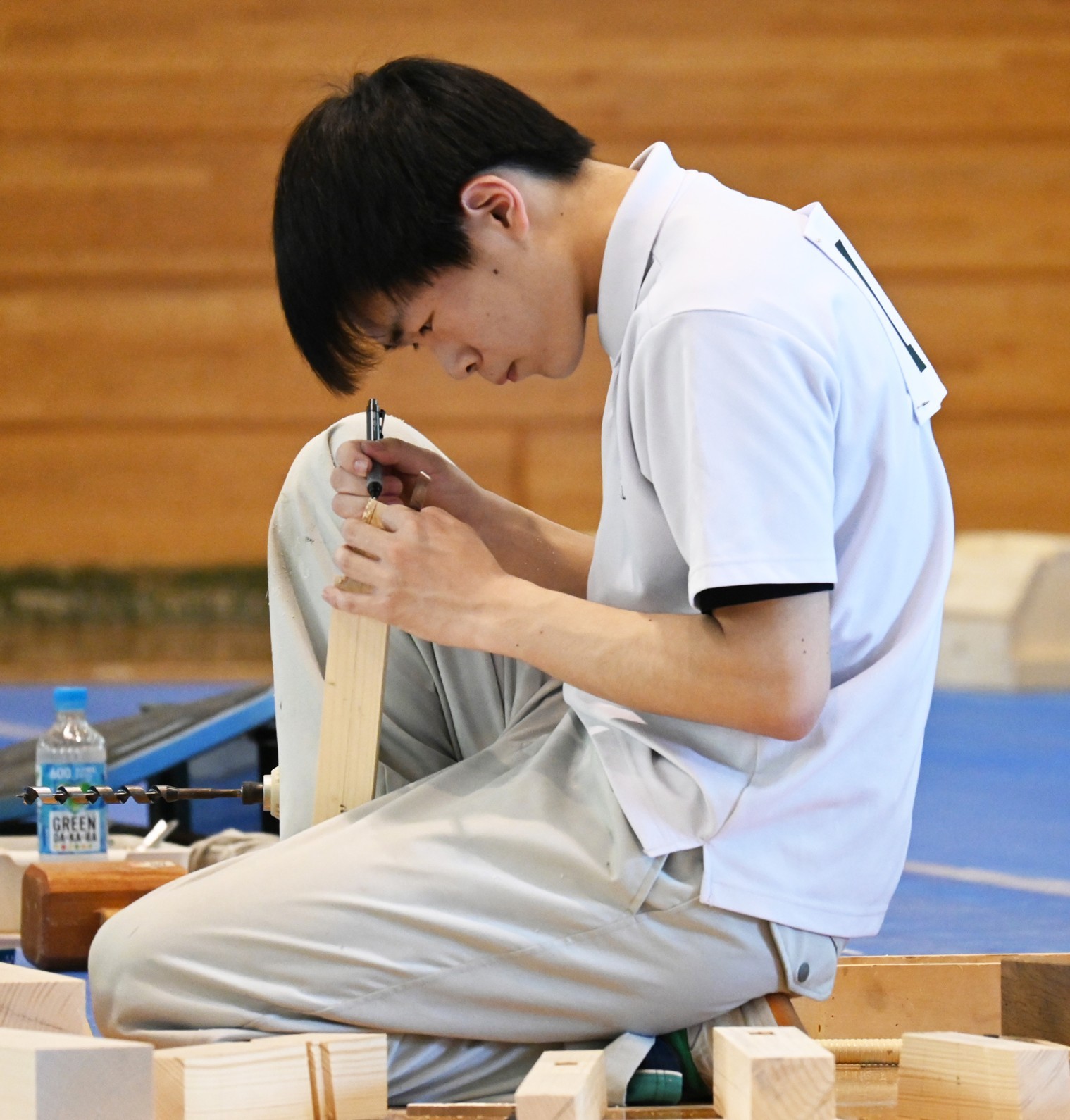 [写真/与えられた課題に取り組む河﨑さん。優良賞を受賞]