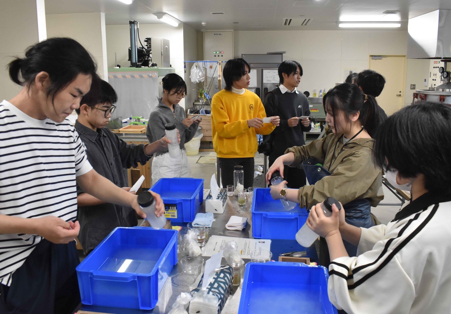[写真/富貴紙すきに取り組むメンバー]