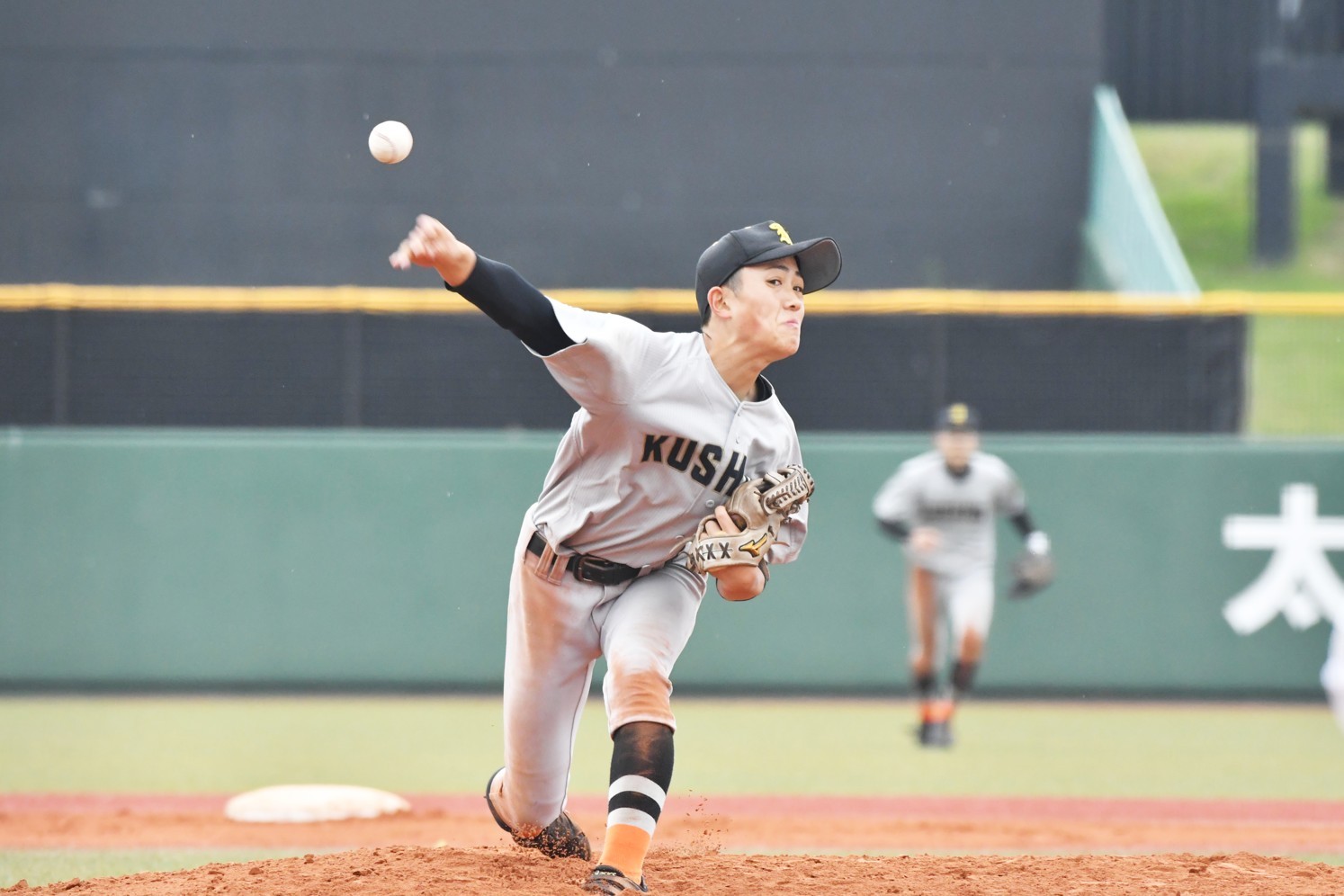 [写真/【Bブロック1回戦、釧工業─釧商業・厚岸翔洋・霧多布】投げては7回無失点、打っては3打数3安打2打点と大活躍した釧工業の志賀]