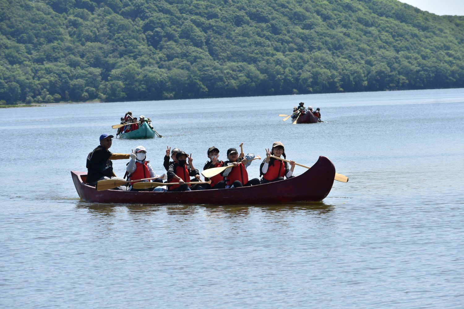 [写真/釧路川に向けて塘路湖を進むカヌー]