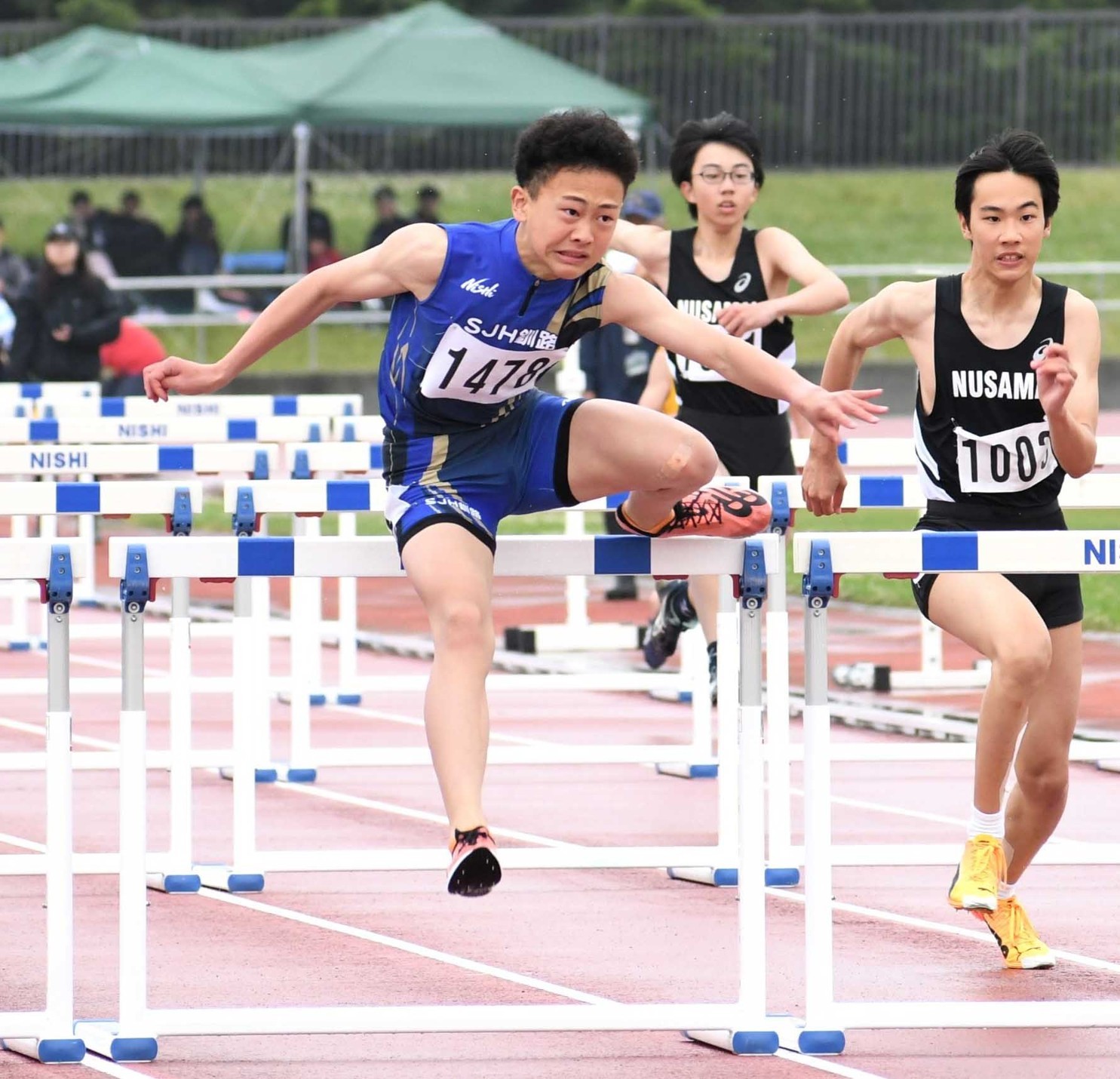 [写真/釧路地区男子110㍍障害で11年ぶりに大会記録を塗り替えたSJH釧路の森]