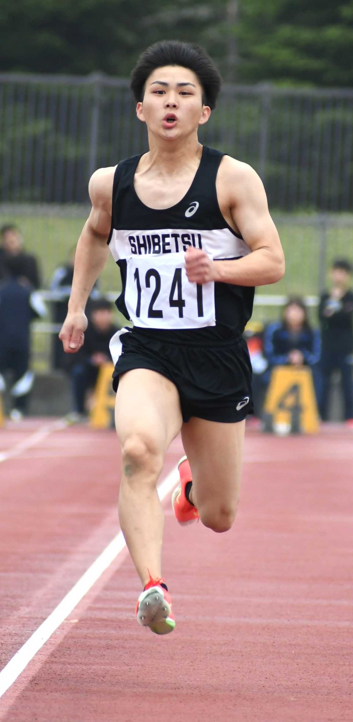 [写真/根室地区男子100㍍で昨年自身が打ち立てた大会記録を更新し、1年間の成長を証明した標津の井口]