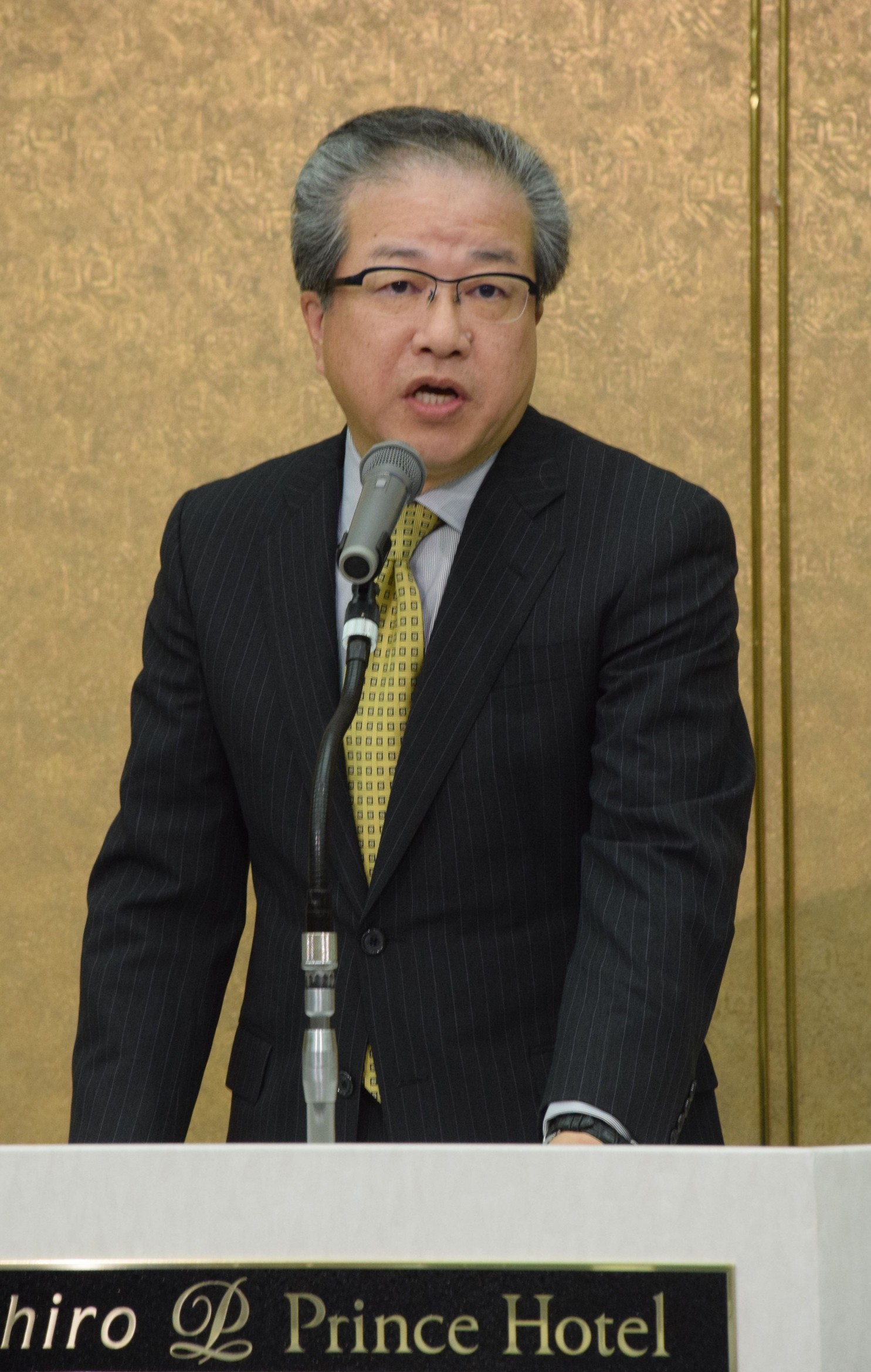[写真/あいさつする遠藤会長]