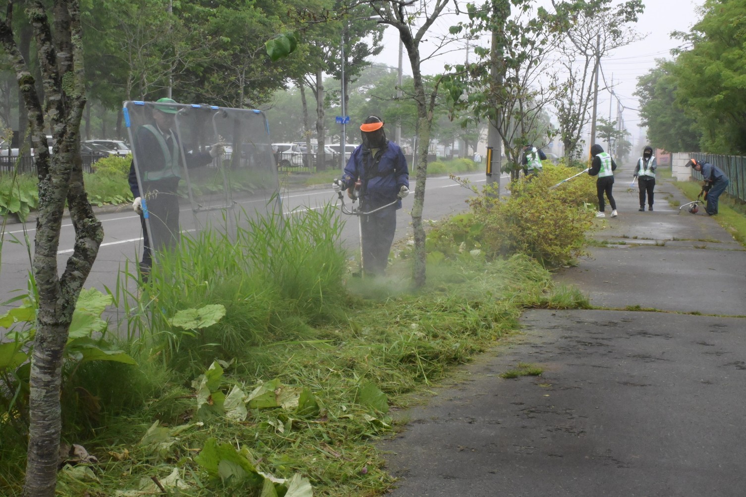鳥取公園通歩道緑地帯で草刈り 本田組【釧路市】(2025-06-26)
