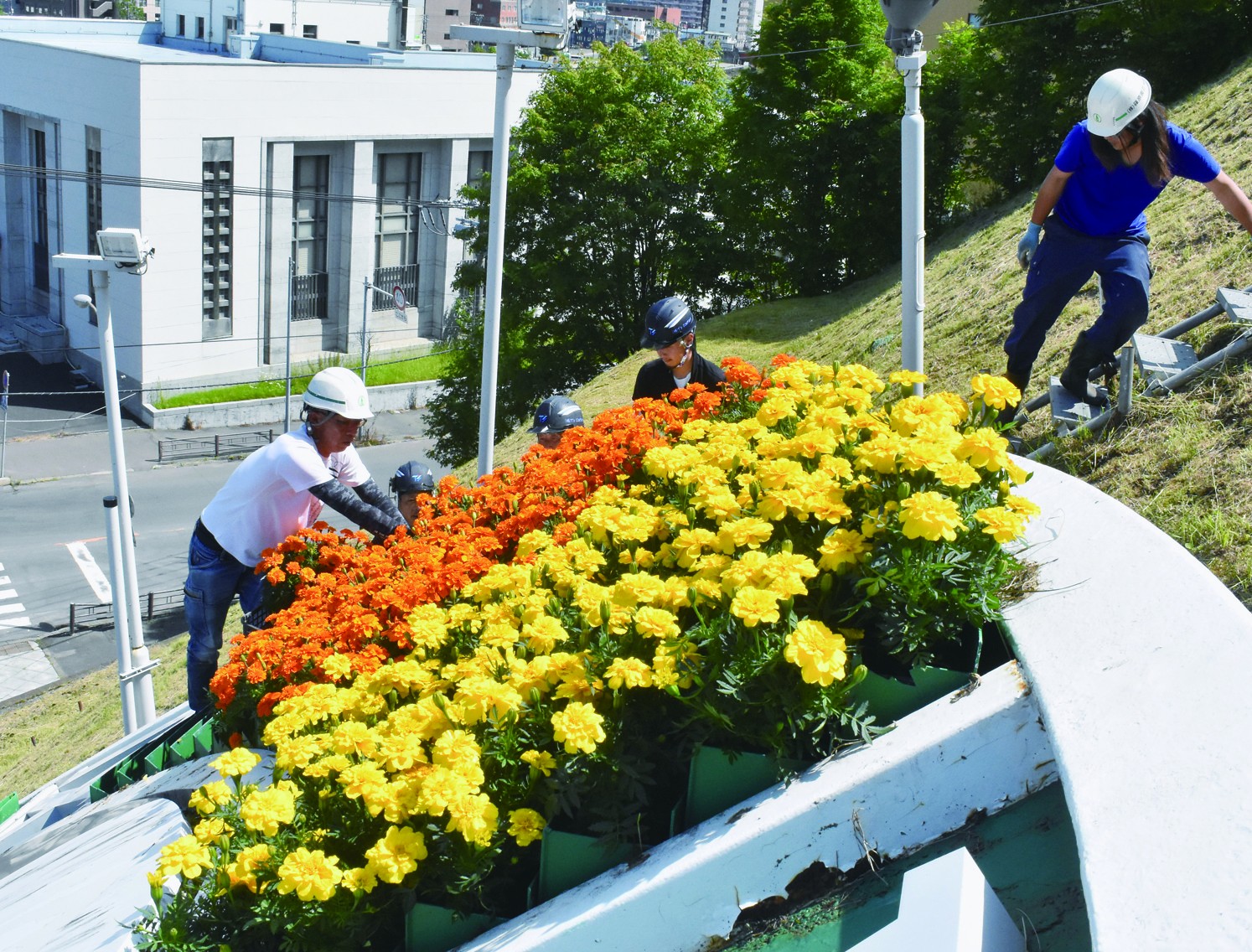 「花時計」夏の装い マリーゴールド1300株植栽【釧路市】(2025-06-29)