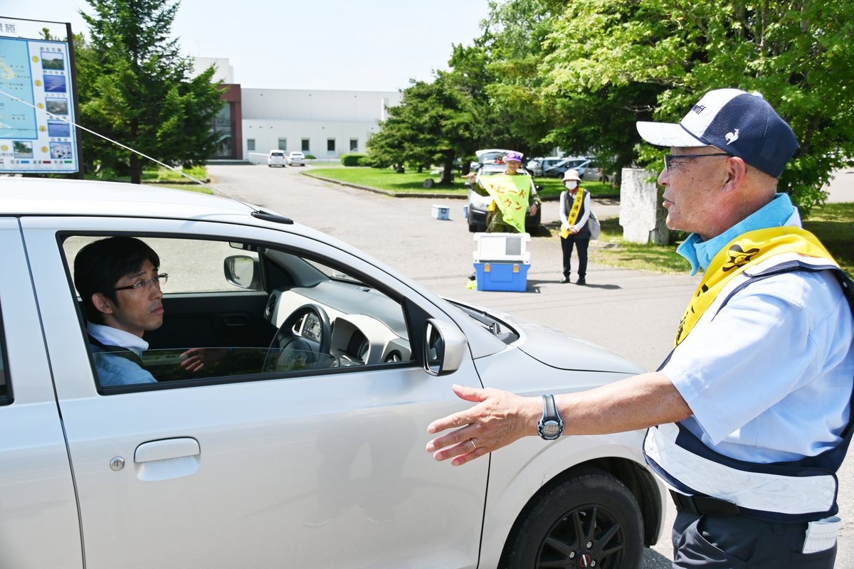 安全運転呼び掛け 交通安全協会西春別駅前分会啓発【別海町】(2025-07-22)