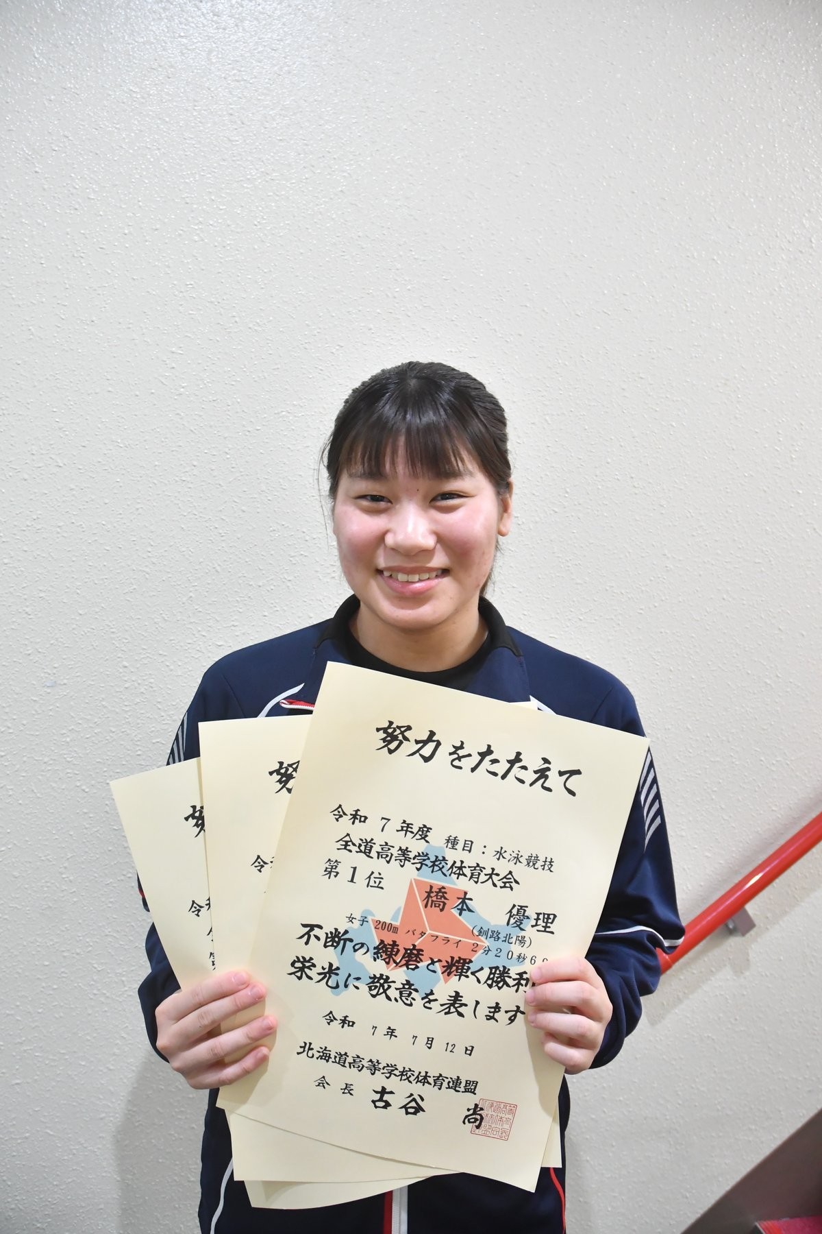 [写真/バタフライで初優勝するなどして3年連続でインターハイに出場する橋本]