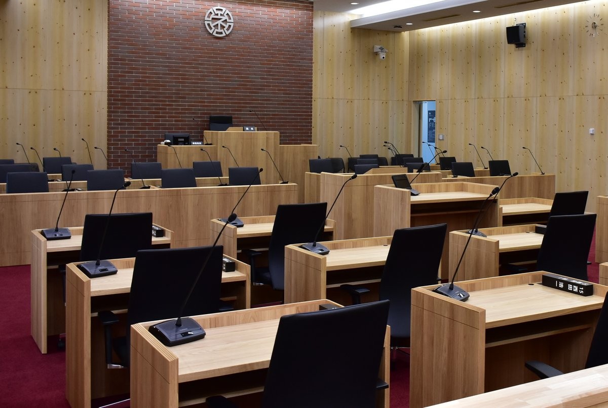 [写真/根室市議会の議場。複数の新人参戦に選挙戦の公算が高まっている]