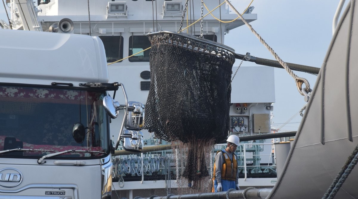 [写真/昨年に比べ水揚げが半分程度となっているイワシのまき網漁業]