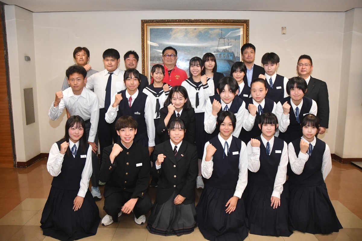 [写真/中村副市長に大会での活躍を誓った選手たち]