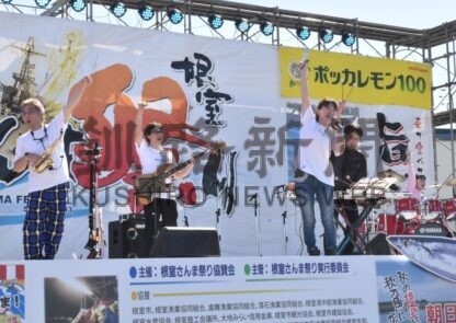 [写真/根室さんま祭りステージでさんまさんばを披露した]
