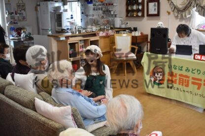 [写真/稲葉みどりさんのおしゃべりと音楽を楽しむ施設利用者]