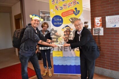 ギョ苦楽展来場5000人達成 芸術館、フランスの2人に記念品【釧路市】(2025-10-08)