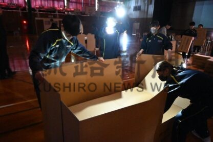 暗闇でベッド組み立て 阿寒高が1日防災の日訓練【釧路市】(2025-10-09)