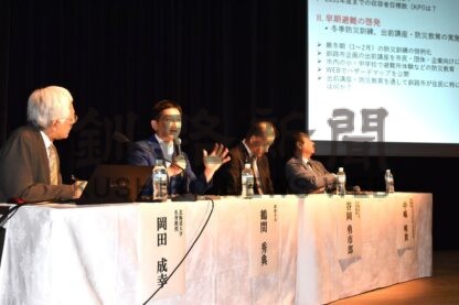 [写真/パネルディスカッションで発言する鶴間市長(左から2人目)]