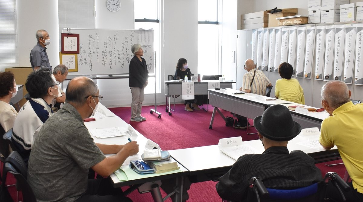 [写真/酒にまつわる句を鑑賞し合った俳句教室]