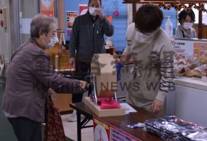 [写真/11日も行う市場のパン屋さんのガラポン抽選会]