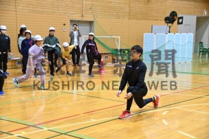 「挑戦に才能関係ない」 陸上の長谷川選手別海訪問 中春別小で指導【別海町】(2025-10-15)
