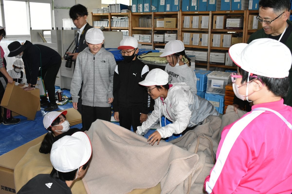 児童ら段ボールベッド体験 弟子屈小で防災教室【弟子屈町】(2025-10-19)