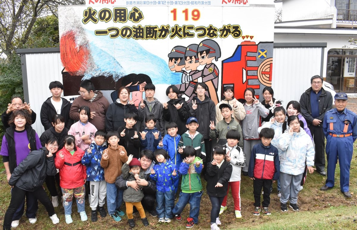 防火看板で火の用心 山花交差点に設置、「あるま」通所の子供たち製作【釧路市】(2025-11-01)