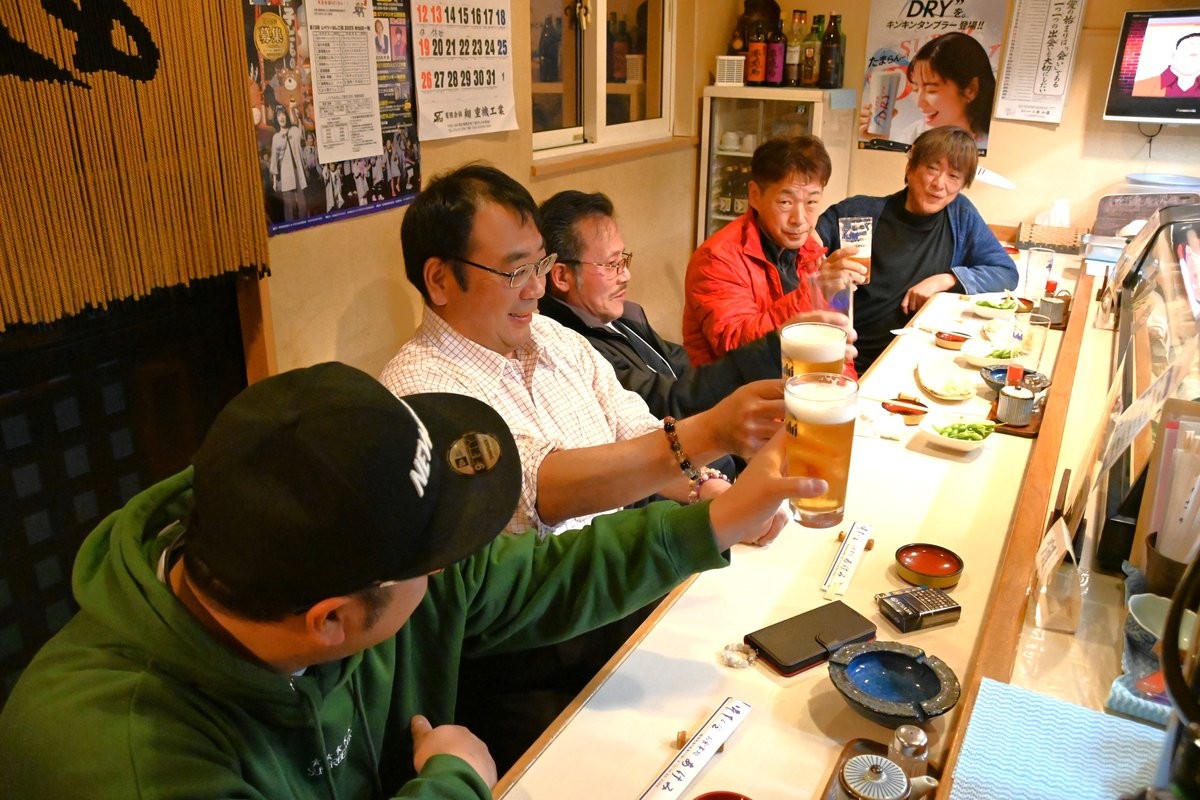 [写真/はしご酒を楽しむ参加者]