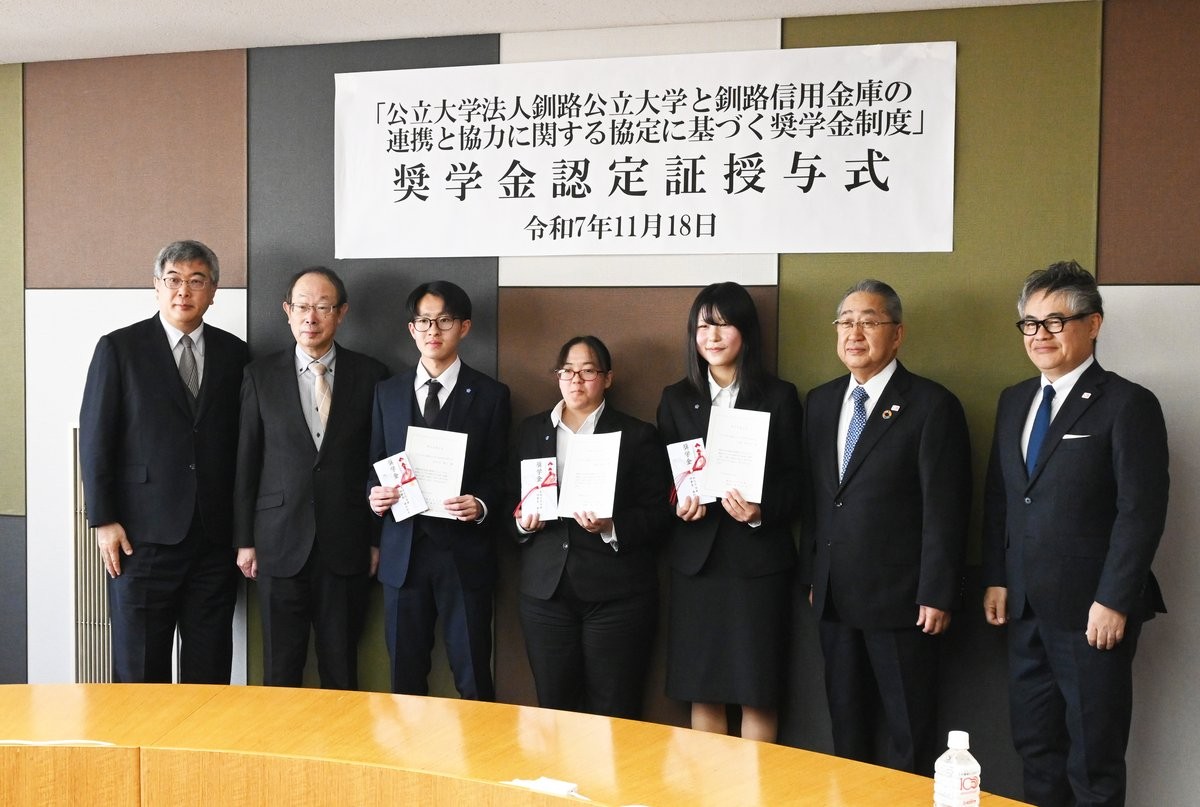 公立大生3人に奨学金 認定証授与式、釧路信金「活躍を心から期待」【釧路市】(2025-11-19)