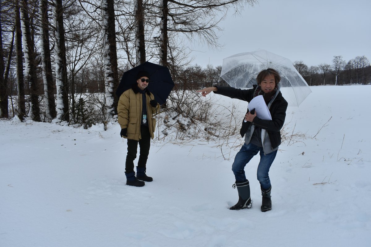 [写真/西熊牛原野のロケ地を下見する山本監督(右)]