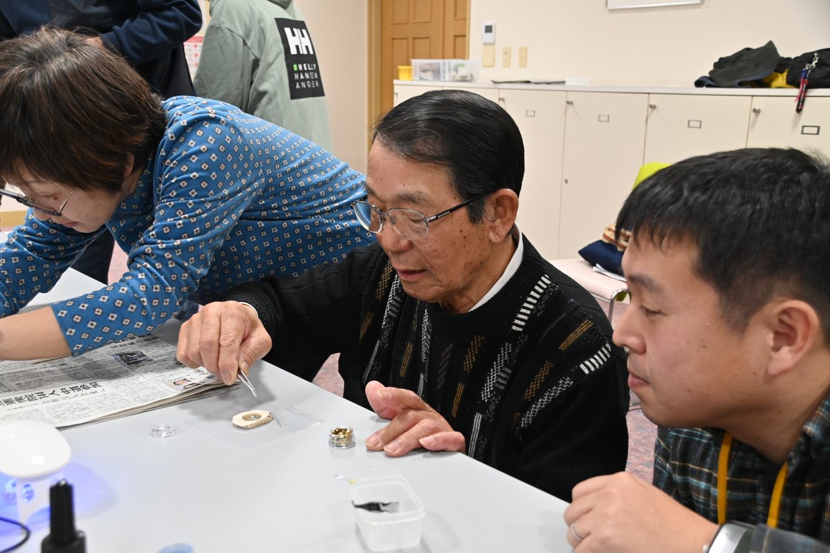 [写真/アクセサリー作りの実践研修に取り組む参加者]