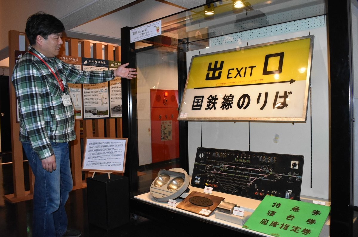 [写真/国鉄時代の列車や駅に関する資料が並ぶ『「釧鉄局」の頃~秘蔵鉄道資料より~』のブース(常設展示室2階)]