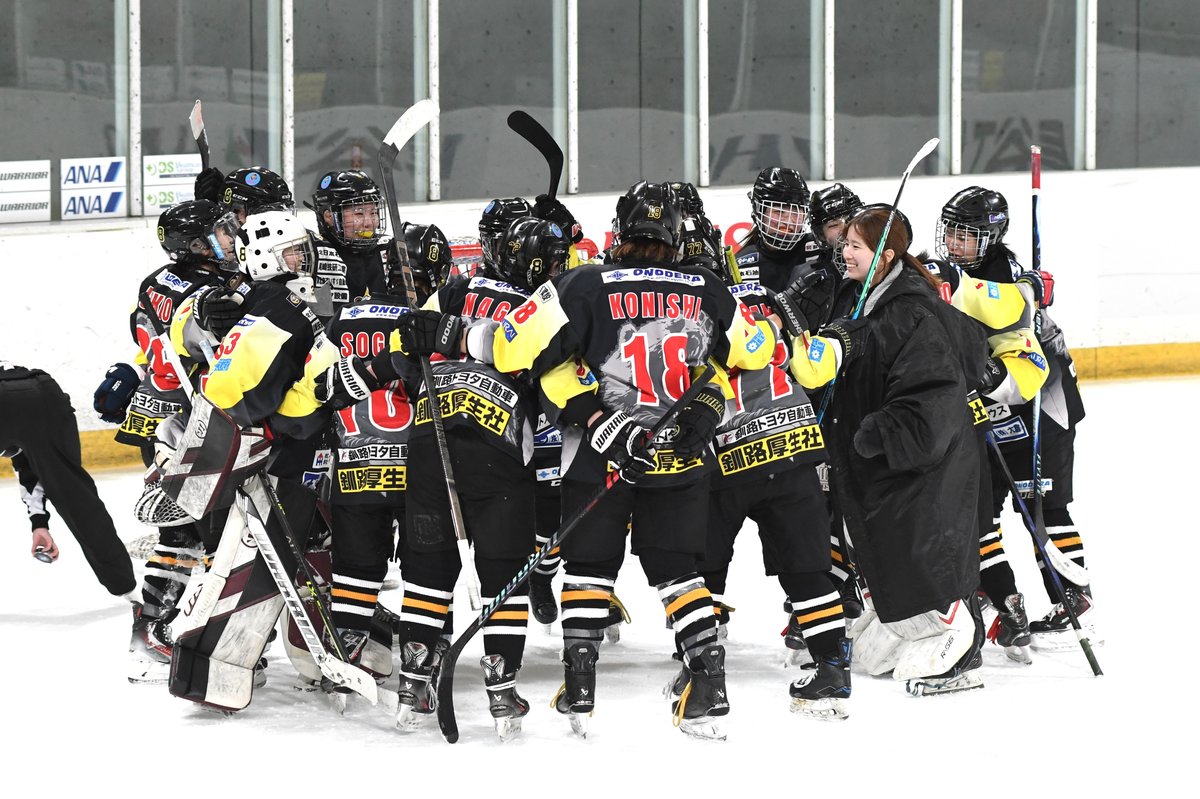 [写真/【7位決定戦、釧路ベアーズ─VORTEXSAPPORO】試合終了のブザーが鳴り、歓喜の輪をつくる釧路ベアーズの選手たち]