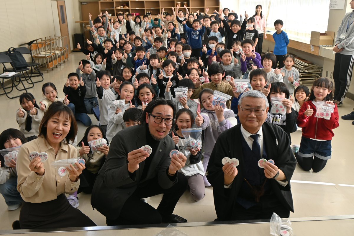 児童デザインのバッジ寄贈 愛国小、さくらまつり実行委に【釧路市】(2026-03-19)