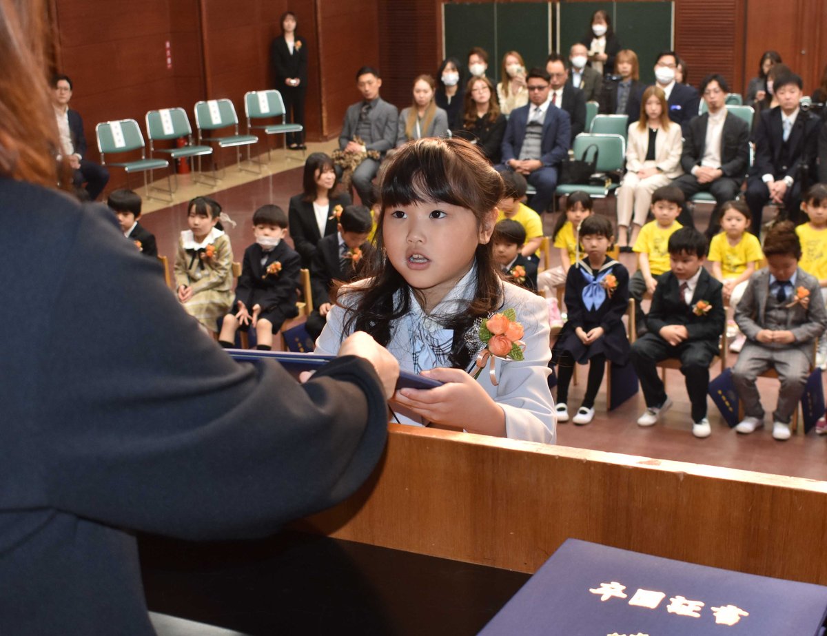 [写真/元気よくあいさつし卒園証書を受け取る卒園児]