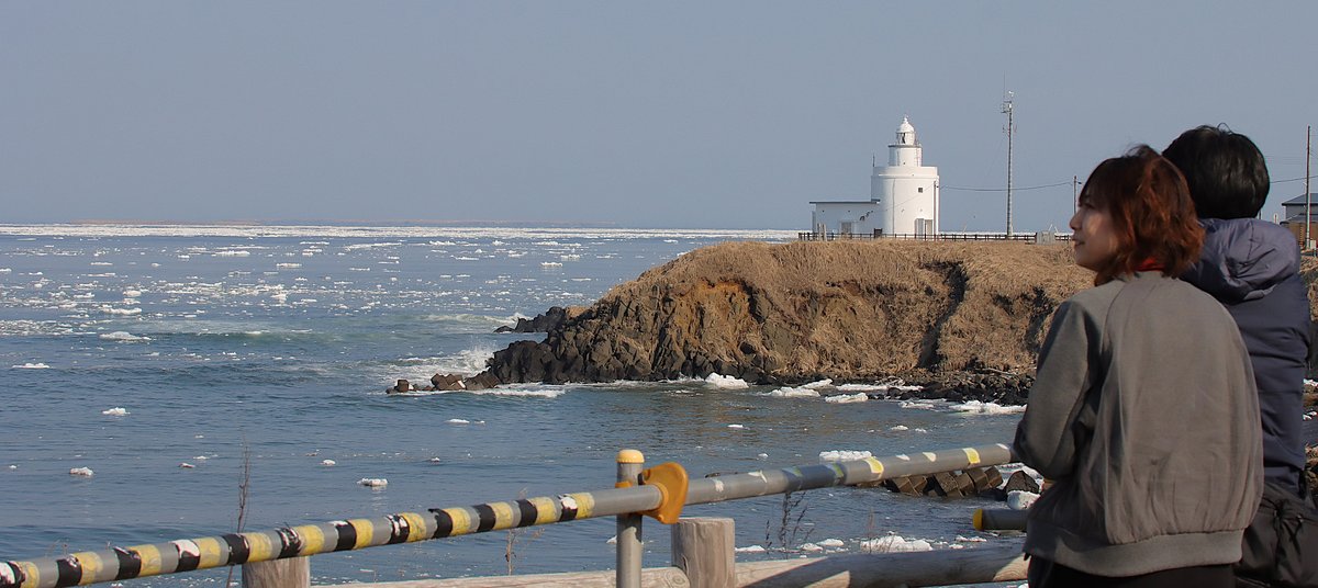 [写真/流氷を眺める観光客ら(20日午後2時20分ごろ、納沙布岬)]
