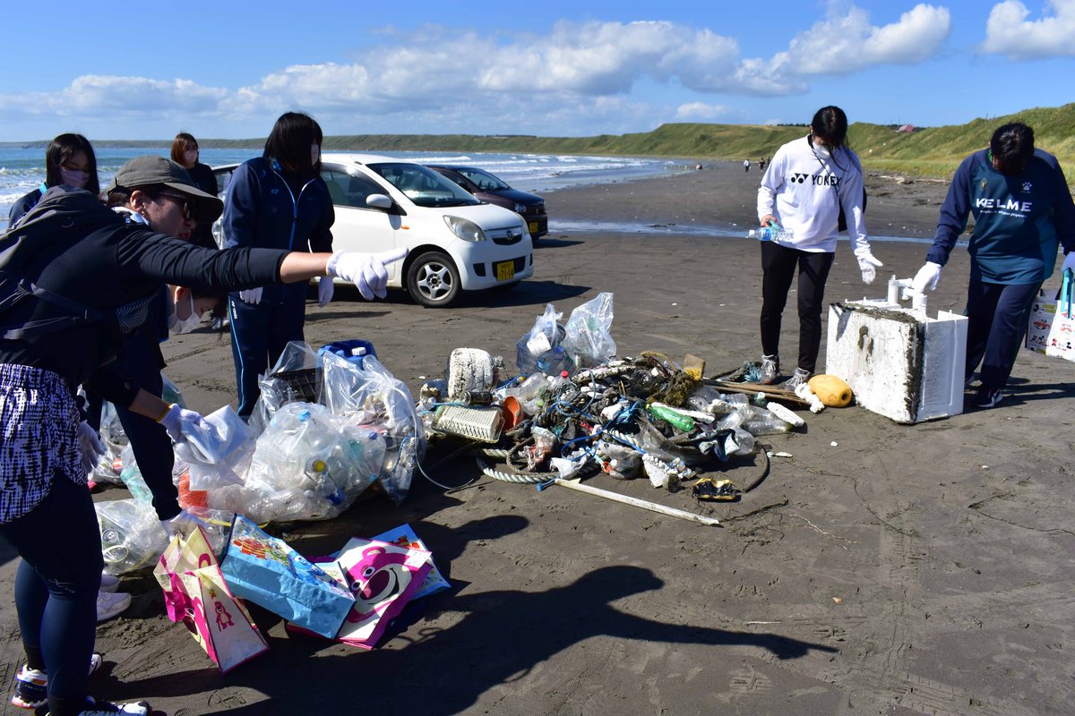 [写真/ごみ収集活動で分別する市民団体「根室スナイパーズ」]
